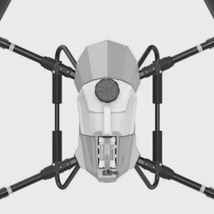G06 6L agriculture drone adopts 3-section compact body design: front section is flight controller, middle section is water tank and the back section is the battery. The structure is exquisite and nice looking.