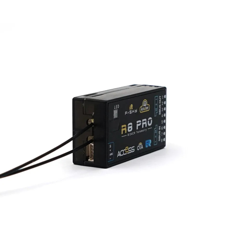 The Archer R8 PRO has 8 high-precision PWM channel outputs and features excellent Anti-interference performance when it comes to spark-ignition on internal combustion models. It supports full-range signal strength with dual detachable antennas that assure optimal antenna reception and maximum range. In addition to all this, the R8 Pro can also be used as a redundancy receiver along with any other FrSky ACCESS capable receiver equipped with a SBUS port.