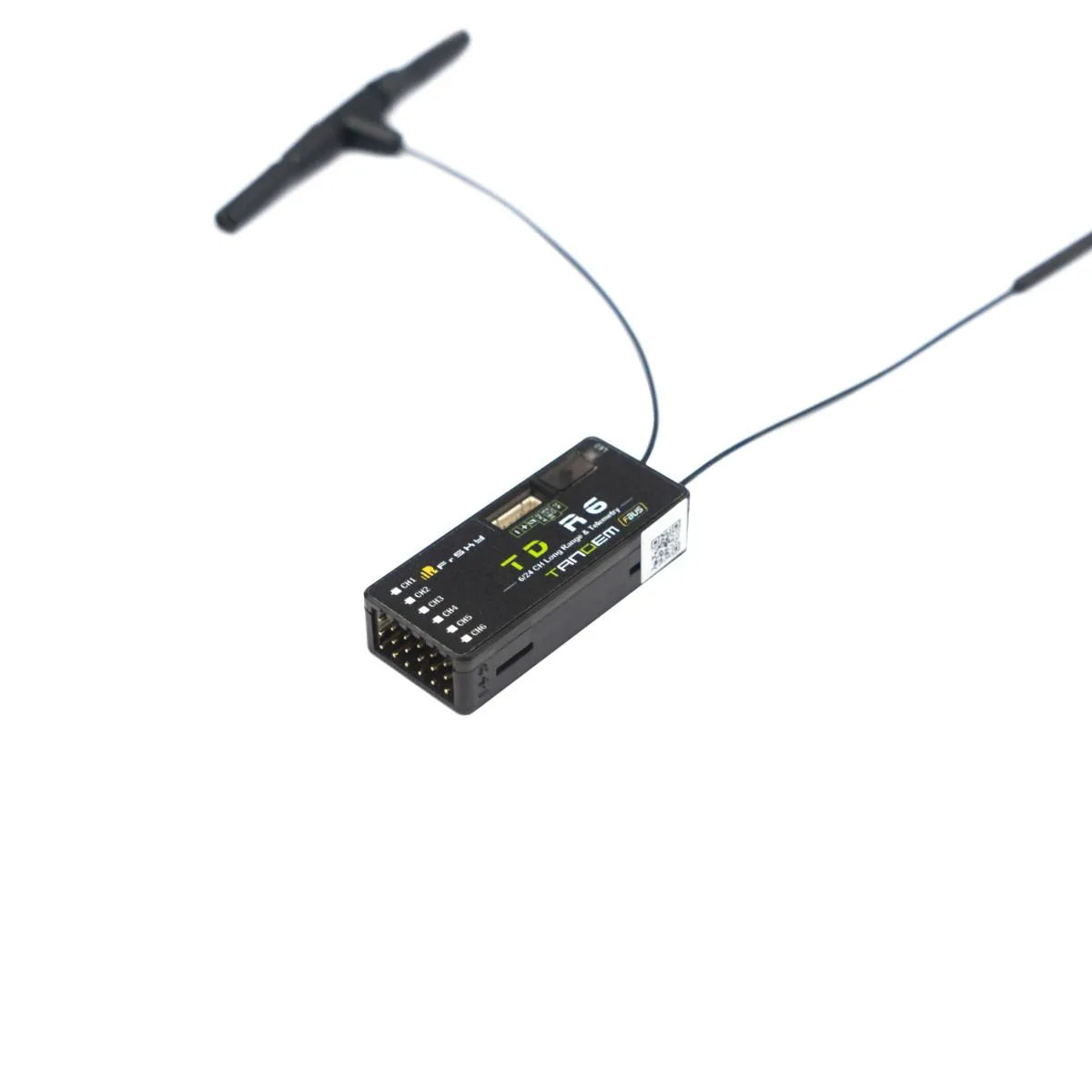 The Tandem series receivers adopt a dual-band antenna design (2.4GHz & 900MHz) that provides multi-directional wide coverage for the remote signal. The telemetry data (Power & Signal related) can be recorded using the built-in black box module within the Tandem receiver, useful for capturing data from any unusual status during the flight.