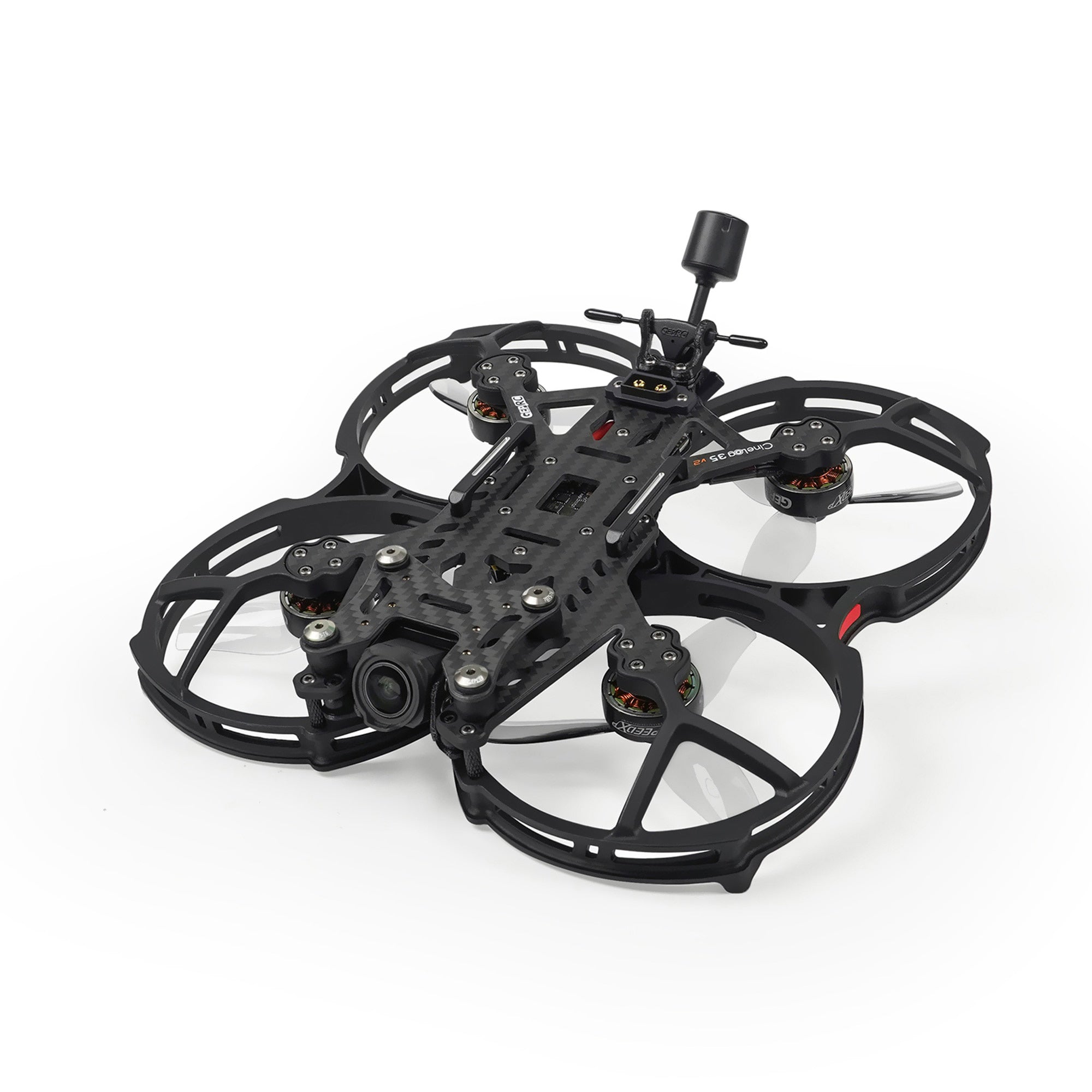 CineLog35 v2 version integrated with O3 VTX. The CineLog35 V2 version of the main carbon plate and injection protection frame increased the 7075 aluminum column for structural strengthening.