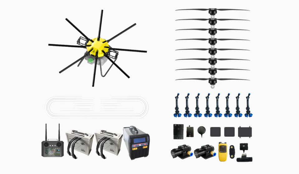 symmetric 8-Axis design features a large wingspan with high-pressure spraying, covering up Highly integrated flight control system, rigorously tested with thousands of hours of field flying to 30 hectares per hour .