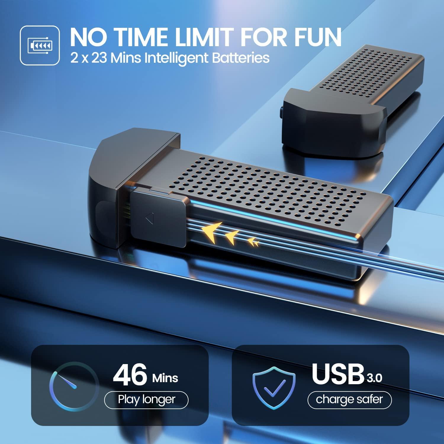 - Better Flight Experience: 2 batteries give you up to 46 minutes flight experience. And functions like Altitude Hold, Optical Flow, Headless Mode, One Key Take Off/Landing and Speed Adjust make it so easy to beginners or newbies.