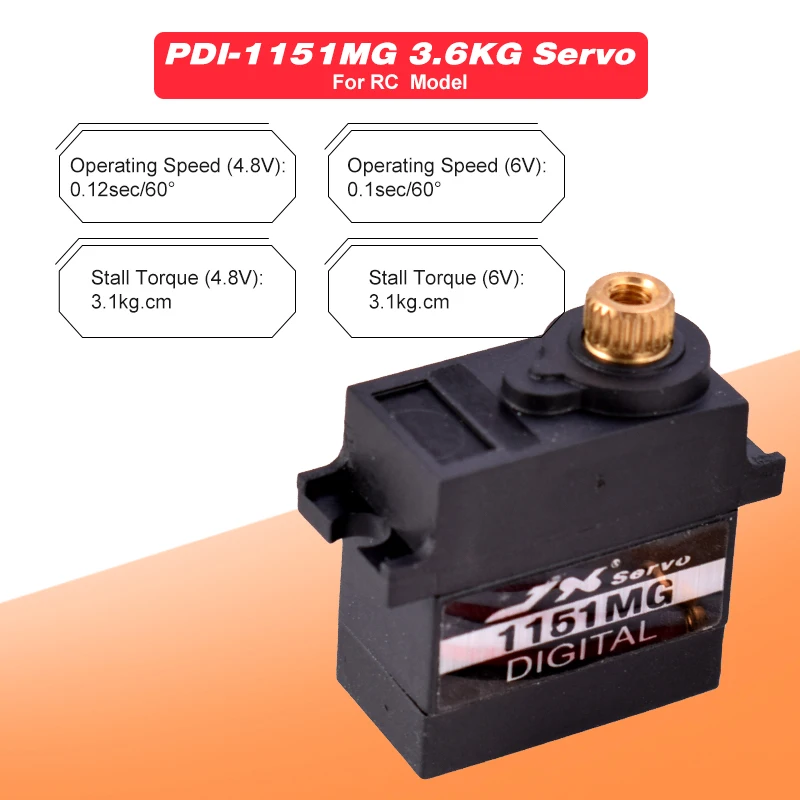 Model Number: JX Servo PDI-1151MG 3.6KG Mini 6V Waterproof Digital Core Servo