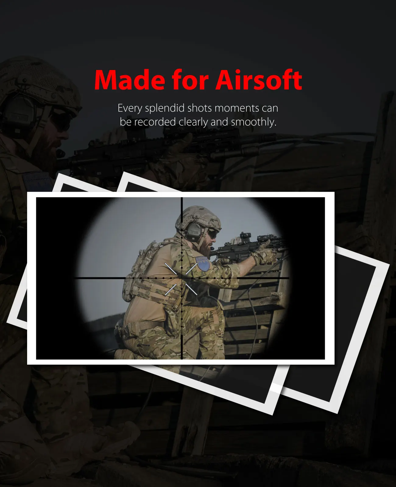 25mm best for Rifles & SMGs, long-focus lens ensures a 20-50 meters long-distance recording.