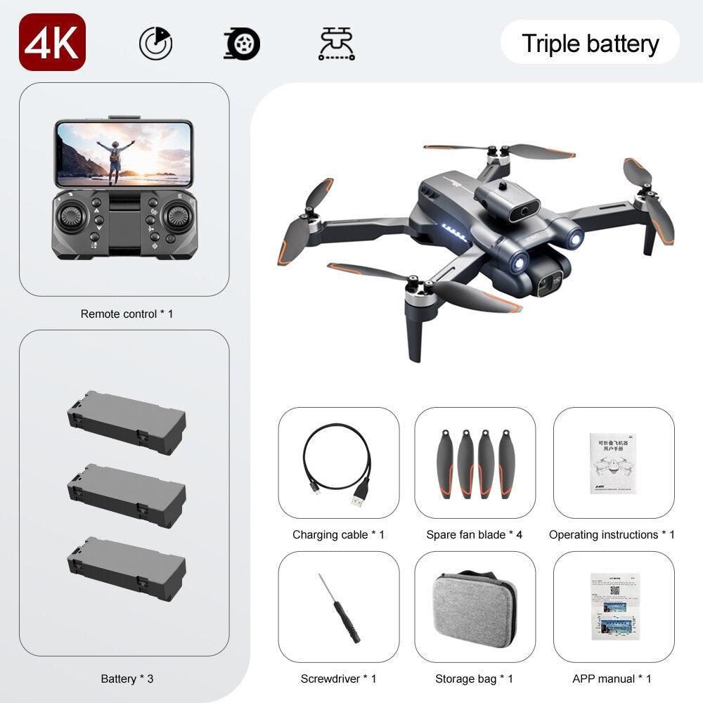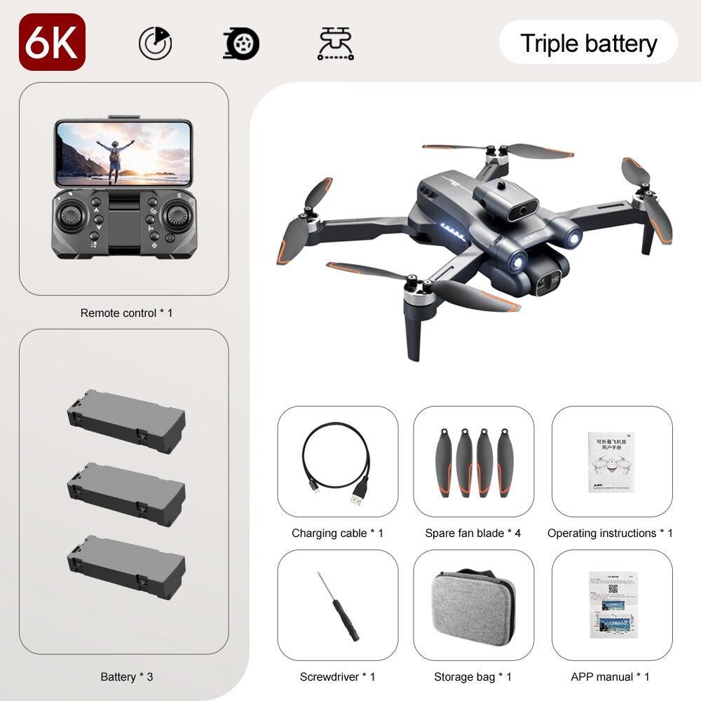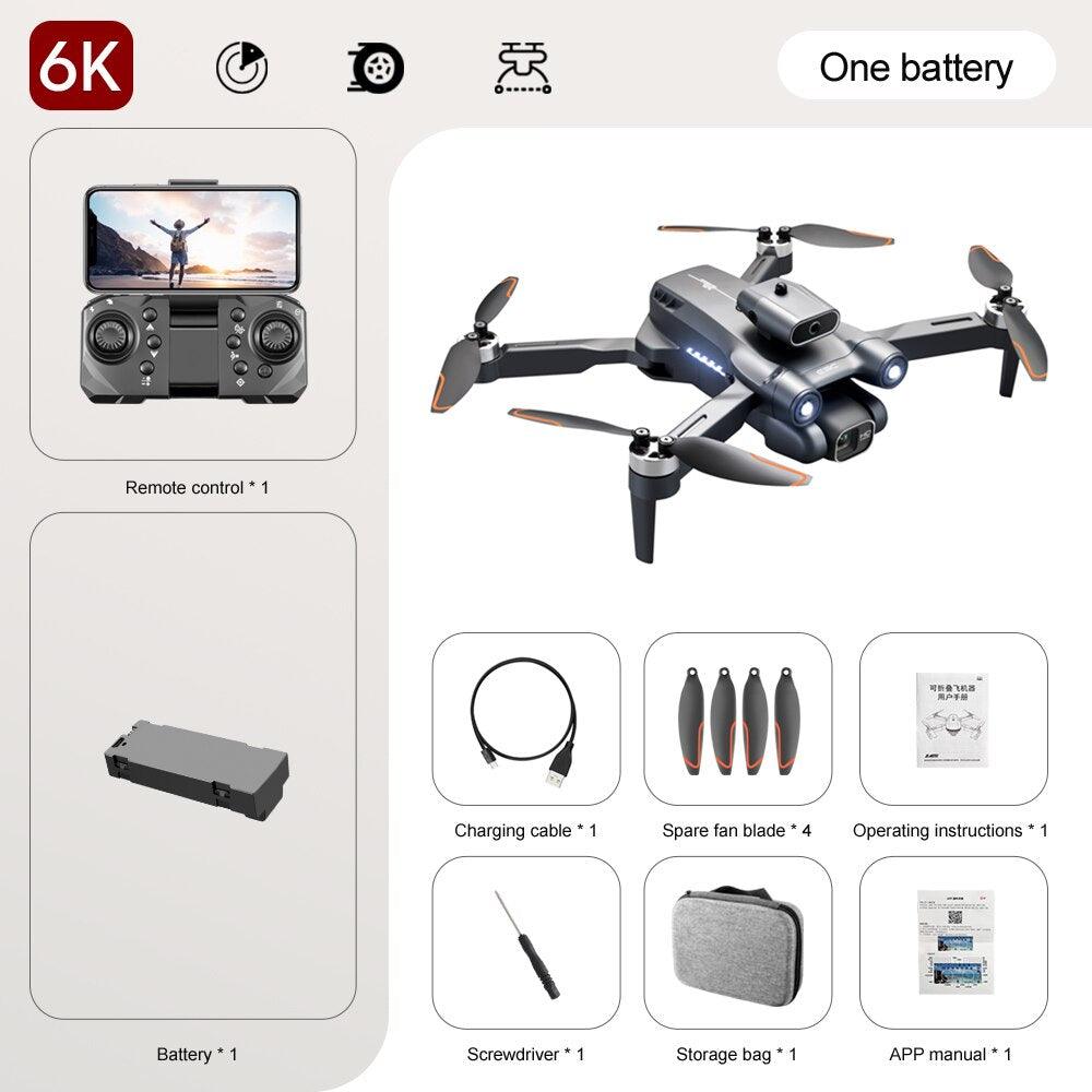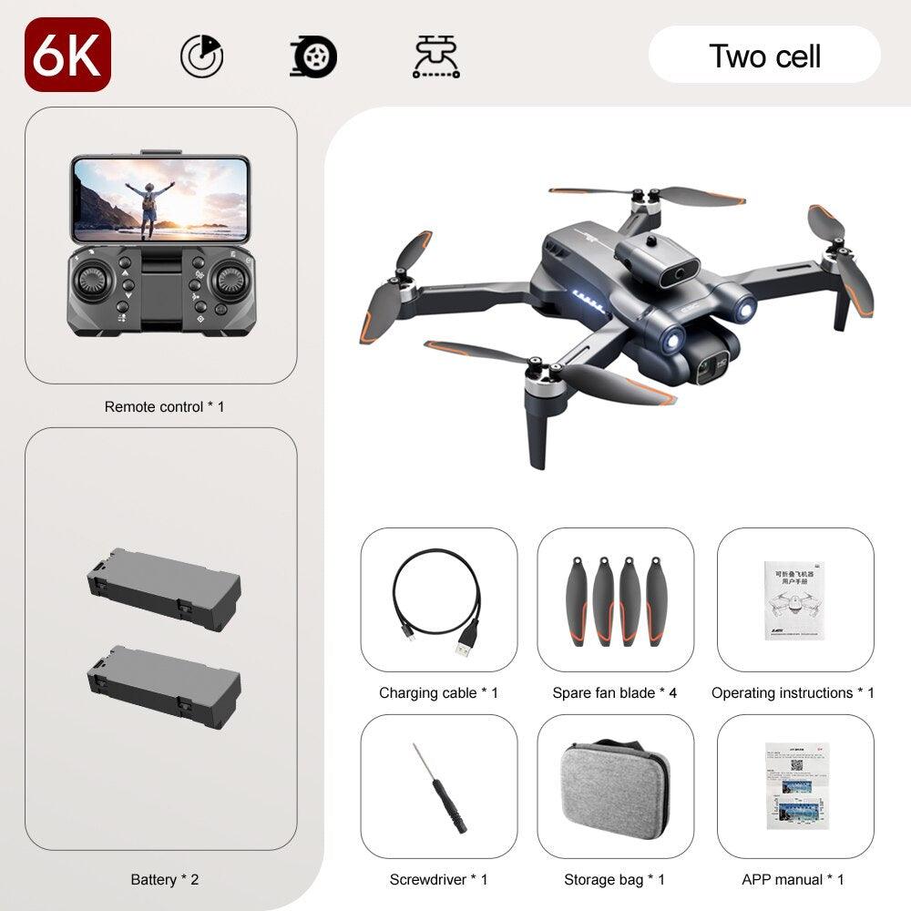 1. The front lens is placed with wide-angle 6K high-definition WIFI, the bottom high-definition lens with optical flow can switch the camera angle, the servo pan tilt is designed to increase stability, and the EIS electronic anti shake is added to make the photo line clearer