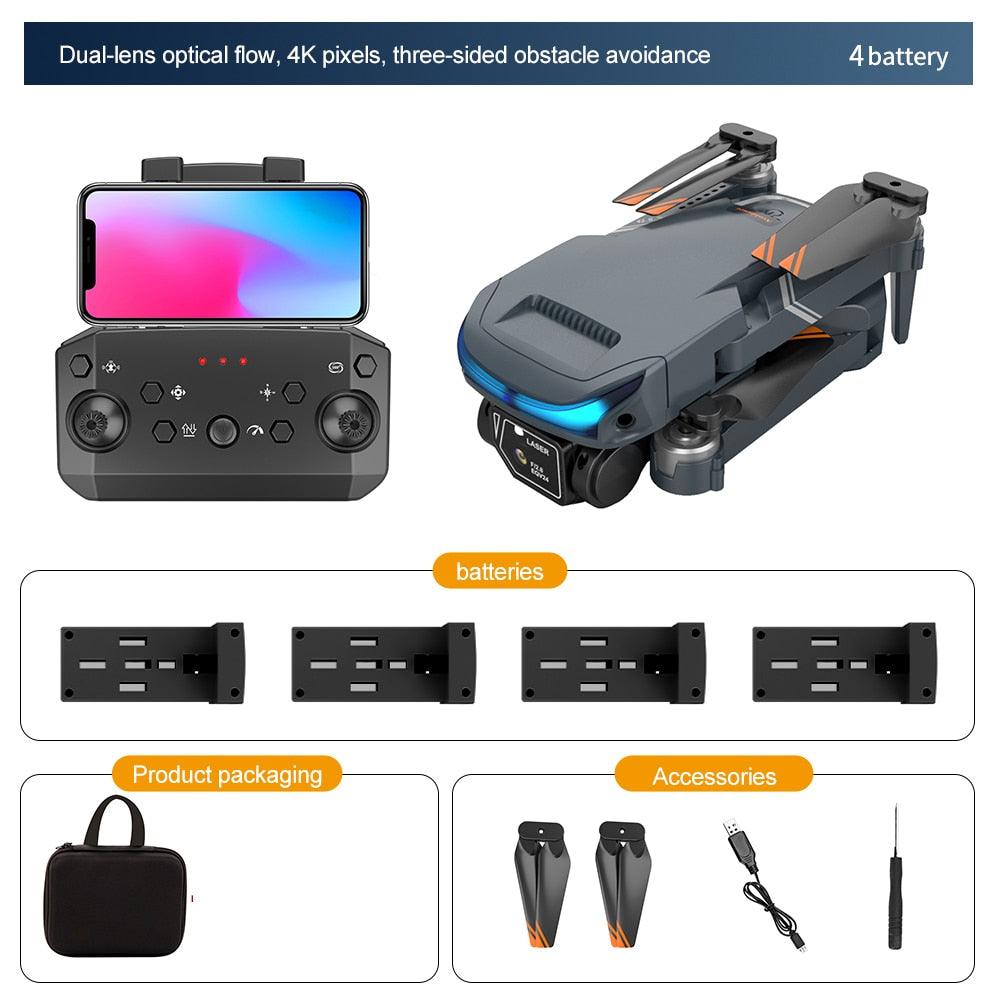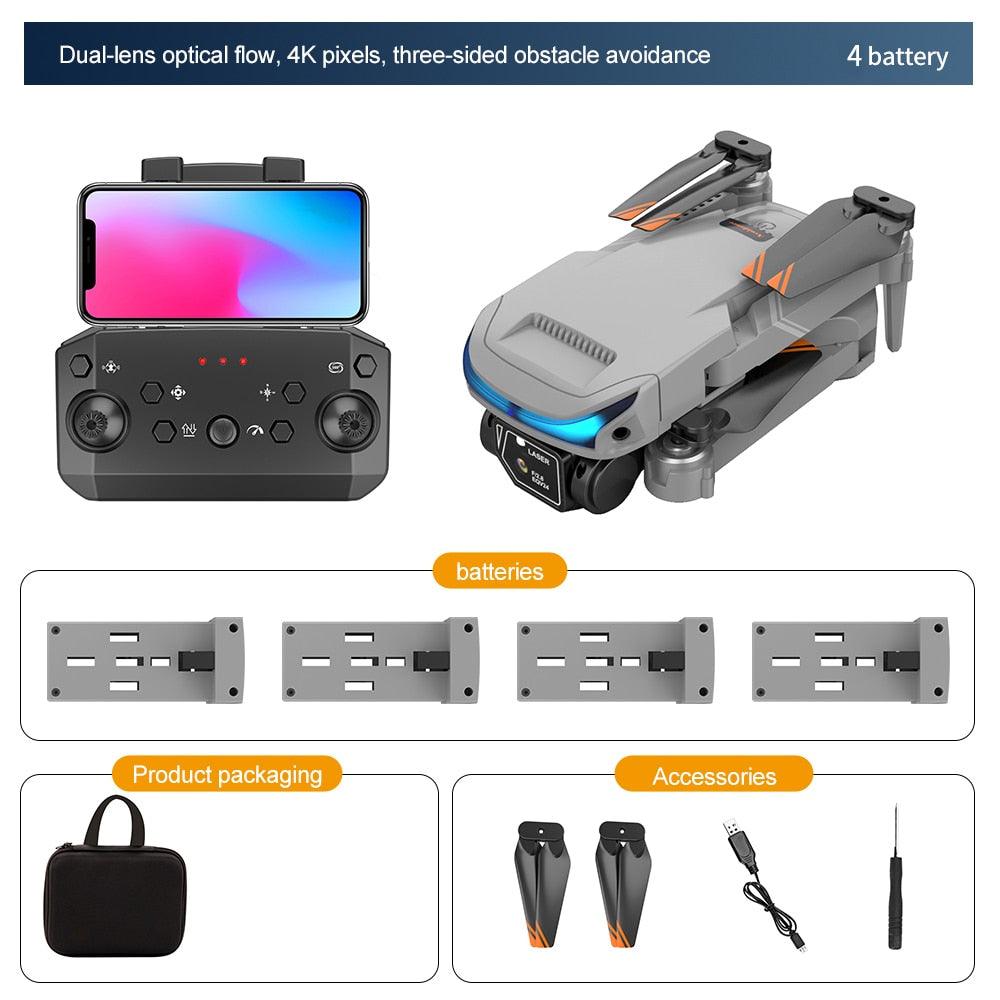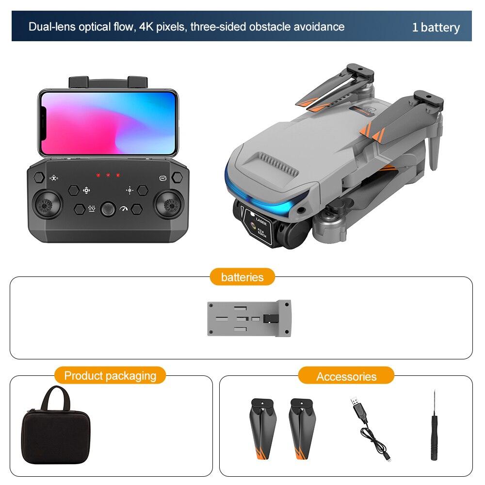 Features a silver and black design, this drone comes equipped with a 4K dual camera system that includes a high-definition lens for capturing crisp and clear footage. The optical flow technology provides an immersive first-person view (FPV) experience, while the remote control allows for precise control over the drone’s movements.