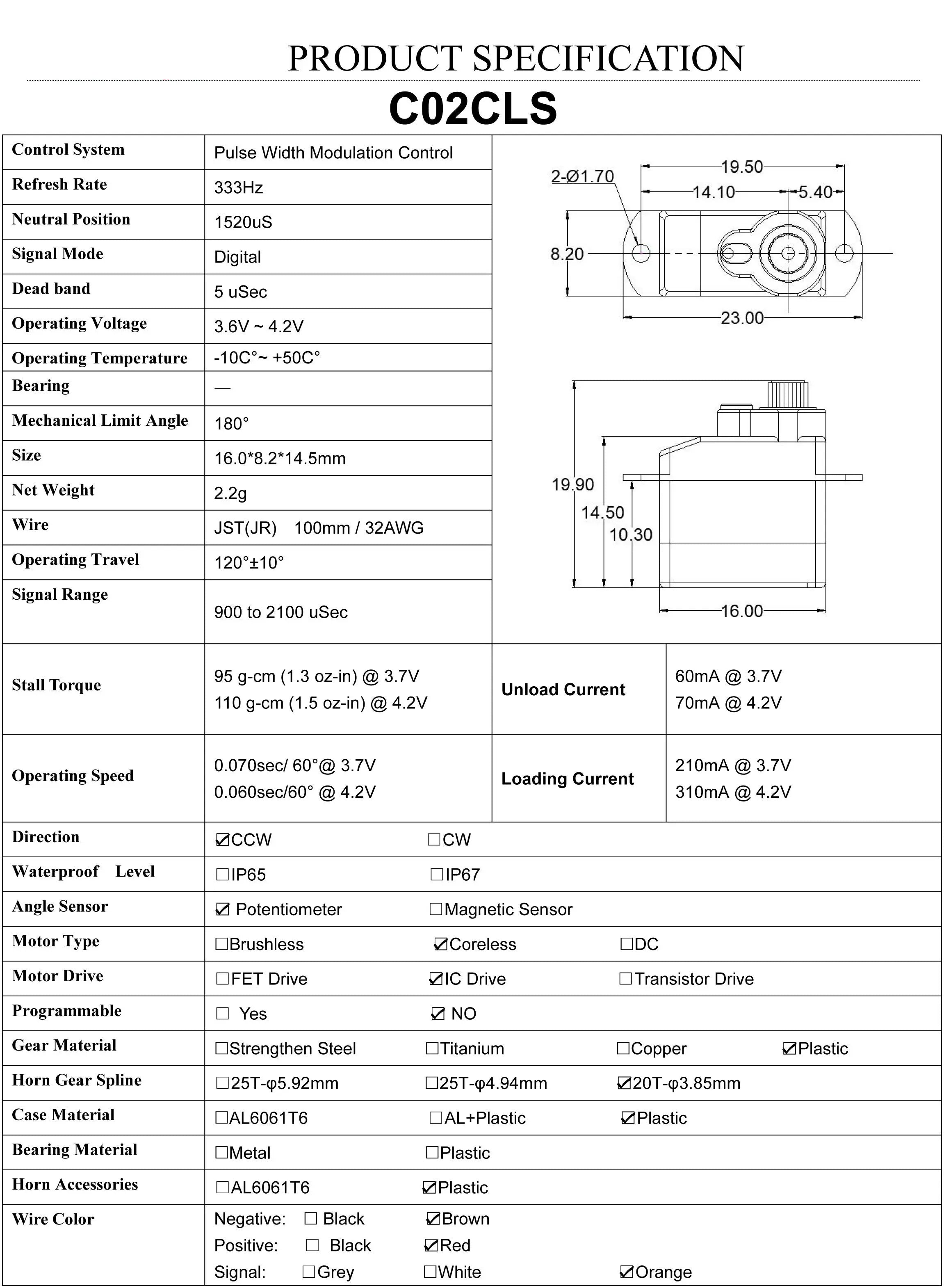 AGFRC C02CLS Nano Digital Servo SPECIFICATIONS