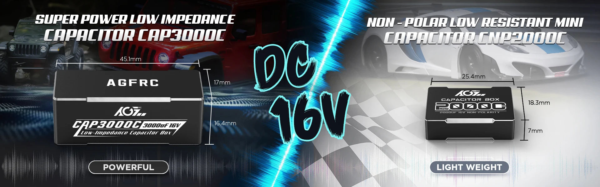 AGFRC CNP2000C 16V 2000uF Aluminum Case Non Polarity Low Impedance Mini Capacitor Box For Mini Scale Car Touring Car Drifter