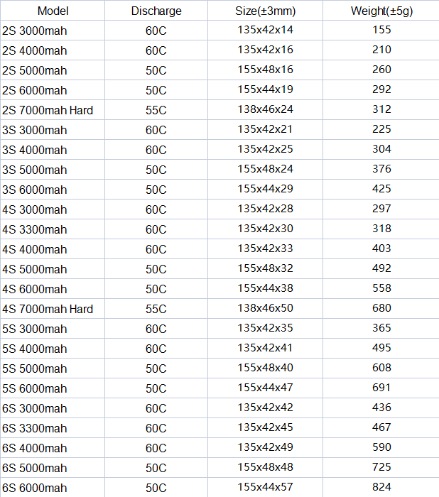 HRB 2S 3S 5S 4S 6S Lipo Battery SPECIFICATIONS