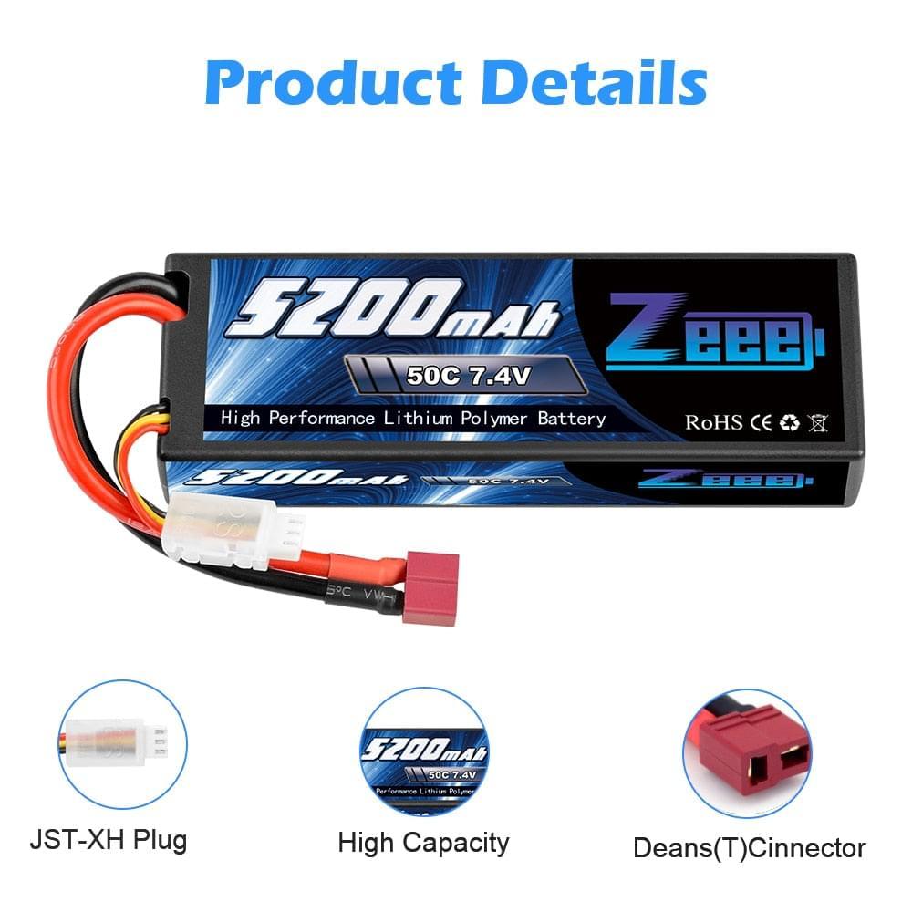 2units Zeee 5200mAh 7.4V 50C Lipo Batteries for RC Car 2S RC Lipo Battery with Deans Plug For RC Car Truck Helicopter Boats