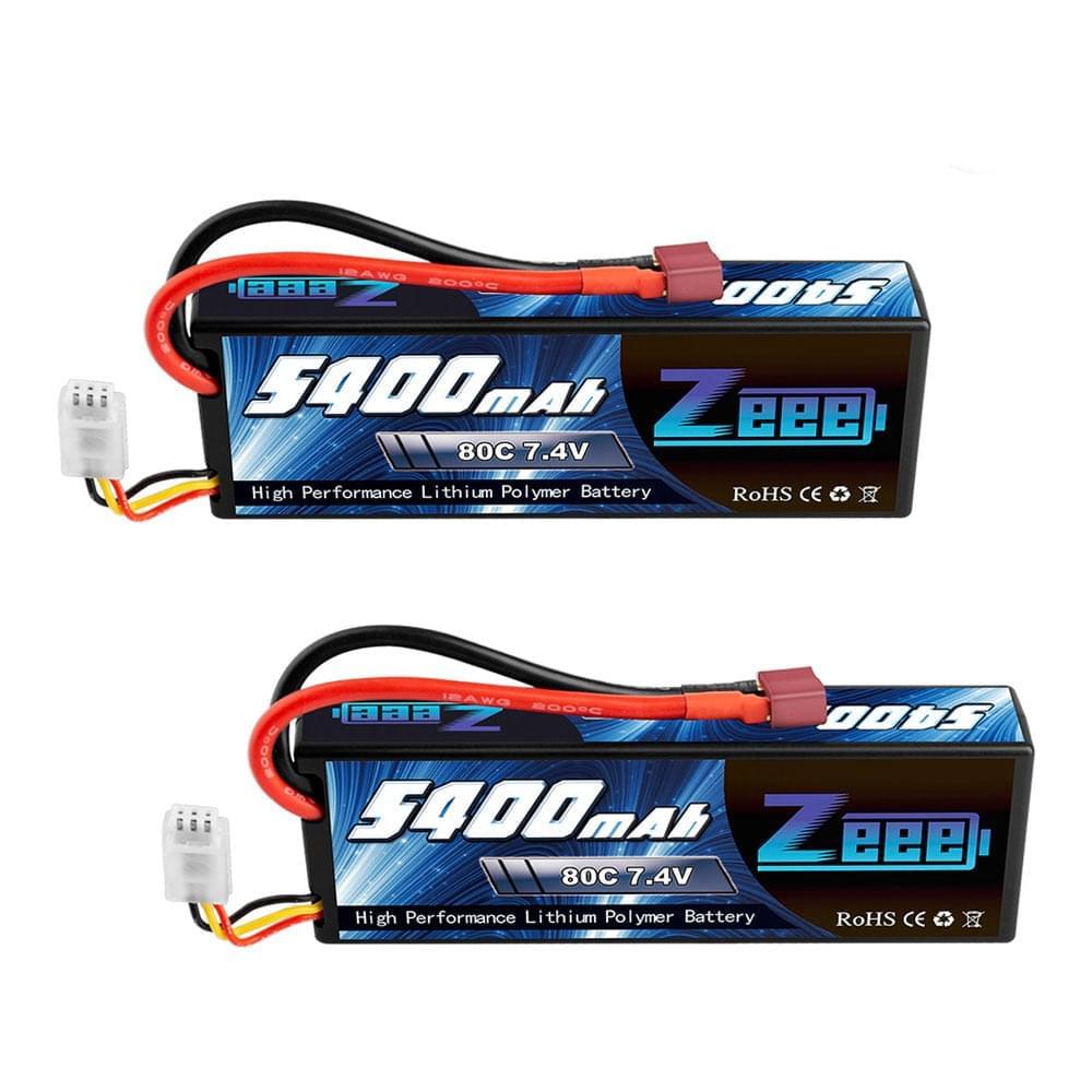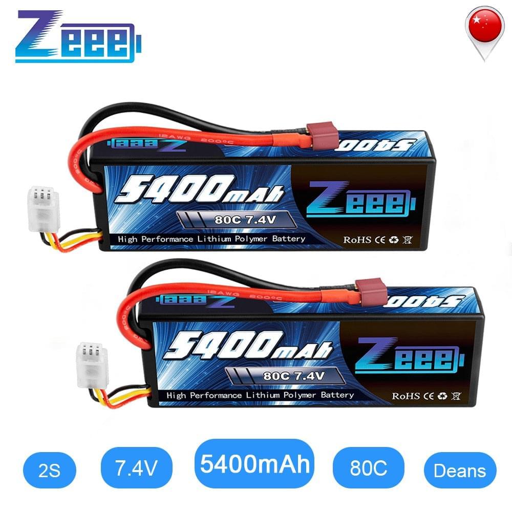 Zeee 5400mAh 80C 2S 7.4V Lipo Battery Hardcase with Deans Plug 2units RC Lipo Battery for RC Car Boat Truck Helicopter