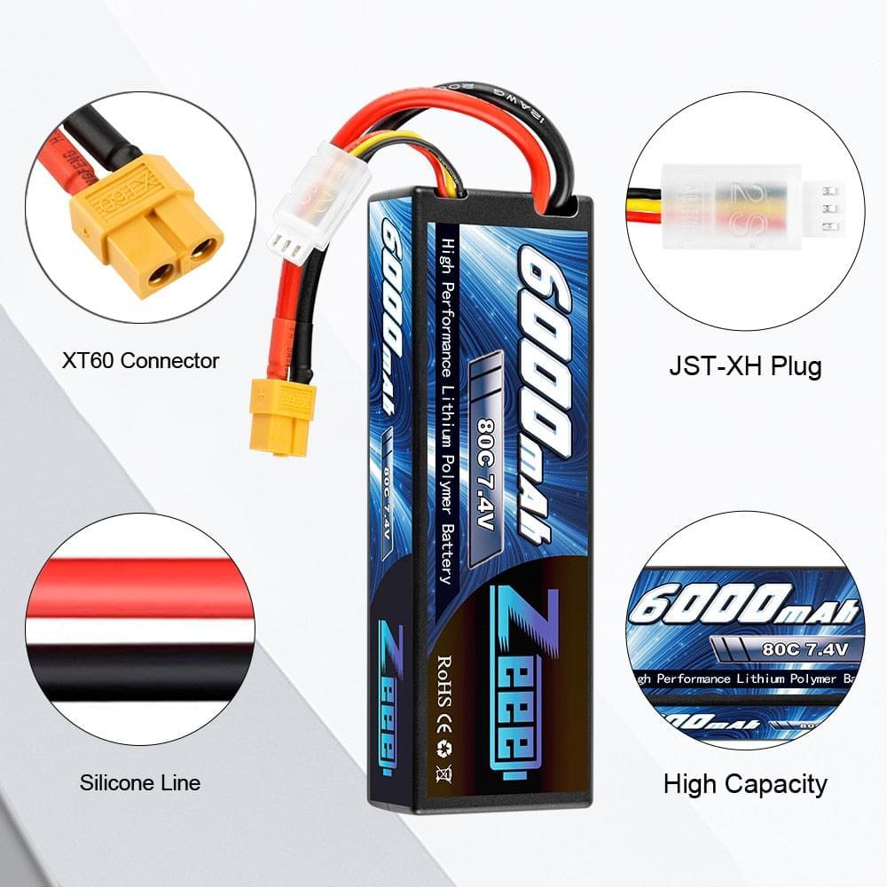 Zeee LiPo Battery 2S 7.4V 6000mAh 80C XT60 RC Parts Hardcase Lipo 2S for Airplanes RC Car Vehicle Truck Tank Boats
