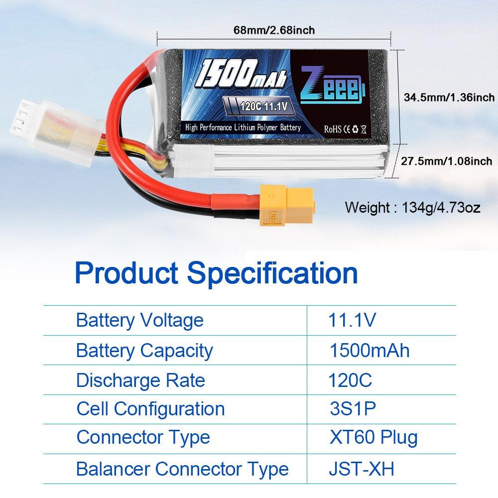 Zeee Lipo Battery 11.1V 1500mAh SPECIFICATIONS