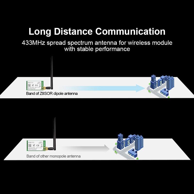 433MHz spread spectrum antenna for wireless module with stable performance . EeE Band of ZIISOR dipole antenna ES Band of other monopole antenna