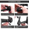 To install on the drone’s front arm, follow these steps: 1. [No change needed]. 2. Attach the buckles marked ‘L’ or ‘R’. 3. Align the screw holes and secure the connecting rods into the back of the groove by screwing from the bottom up to complete the arm reinforcement installation.