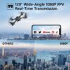 HD Camera: 120° wide angle 1080P High definition FPV Wifi camera, allows to enjoy real-time vivid aerial photos and videos, and creates an amazing impression of the flight for you.