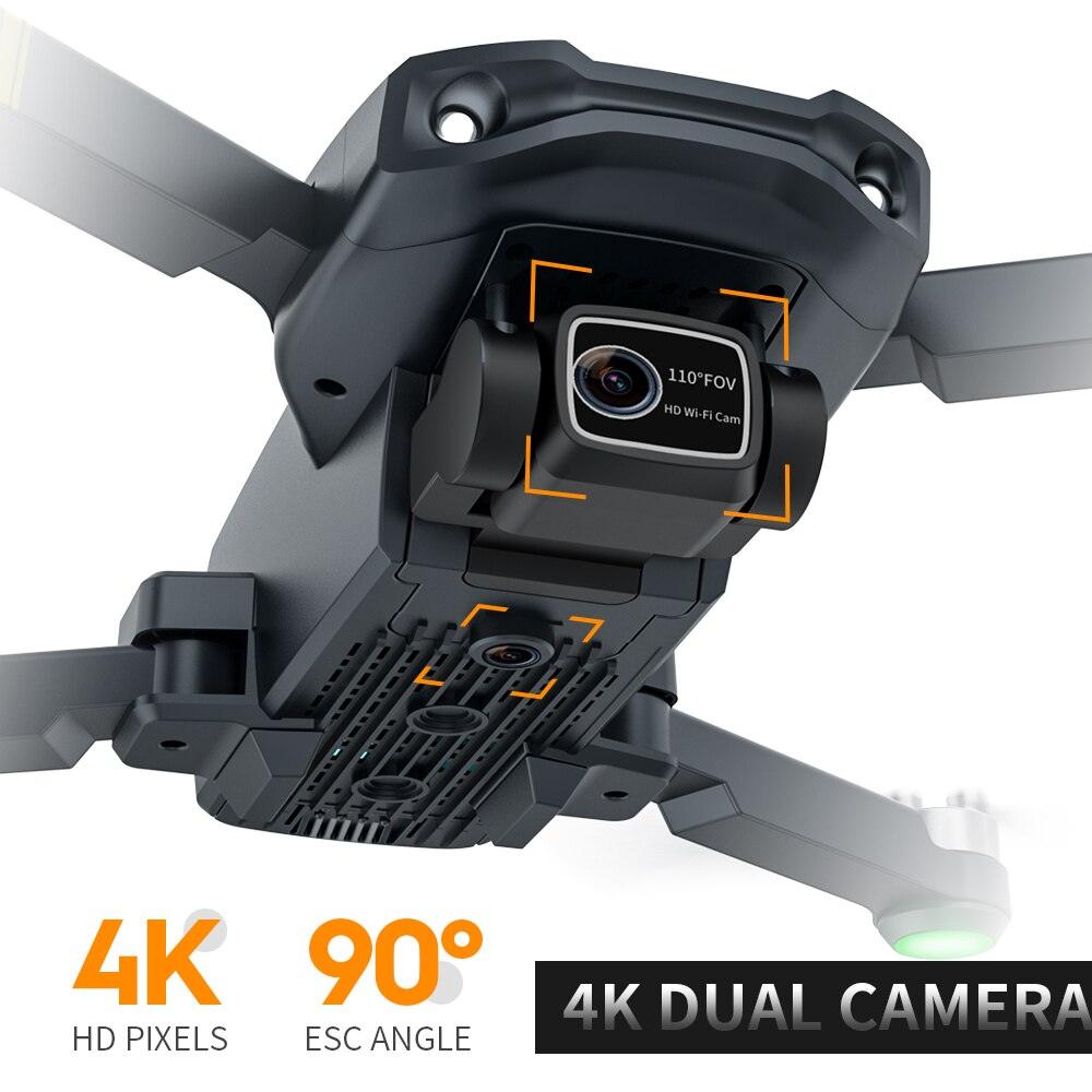 This drone features dual cameras, GPS navigation, and can switch to 4K high-definition mode. The front camera allows for adjustable angles of view up to 90 degrees, which can be controlled remotely.