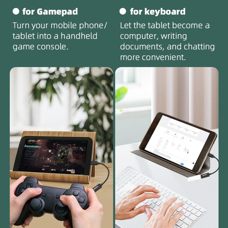The DJI Mavic drone remote control can be connected to mobile phones and tablets via its USB (Female) port, allowing for data transfer using a standard USB 2.0 cable. This adapter also supports connecting external devices such as USB drives, notebooks, and tablets to keyboards, mice, game controllers, and more.