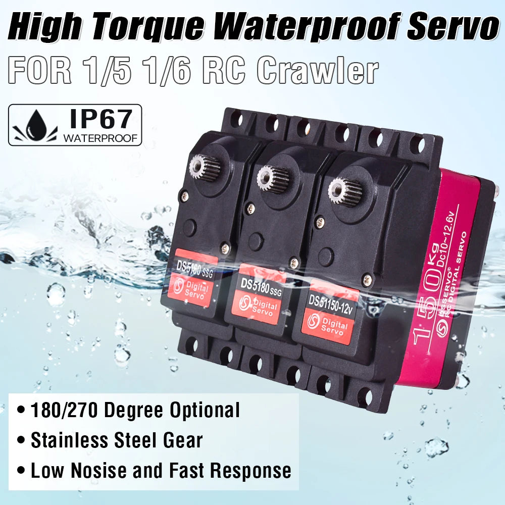 High Torque Waterproof Servo FOR 1/5 1/6 RC Crawler TP67 WATERPROOF ISSG 0 VaF H 180/270 Degree Optional Stainless Steel Gear Low Nosis and Fast Response 8 1 DS;Lo0 s86 1 8 DSSi80s Digltal’ servo DS5115O-12v | 4 Koigital’