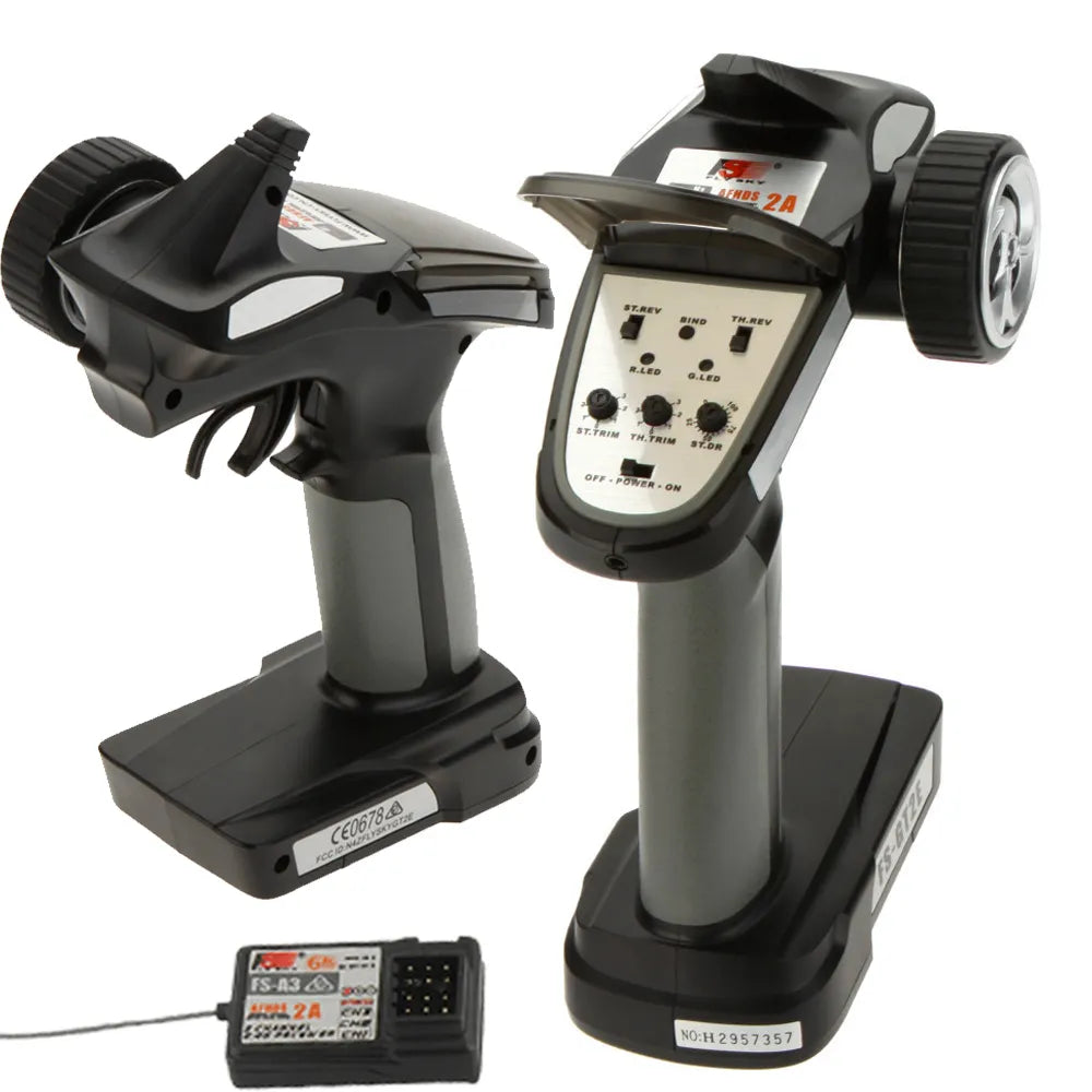 The Flysky GT2E is a affordable, 2CH 2.4G radio system, with djustable steering dual-rate and servo reversing, making it a very simple setup for your car or boat. The automatic frequency hopping digital system provides a strong, reliable 2.4ghz signal, so rest assured you’ll always be in control. Included in the package is a 3-channel mini receiver that will fit in most vehicles. The ergonomic feel of the trasnsmitter will feel good in your hands even after long track sessions.