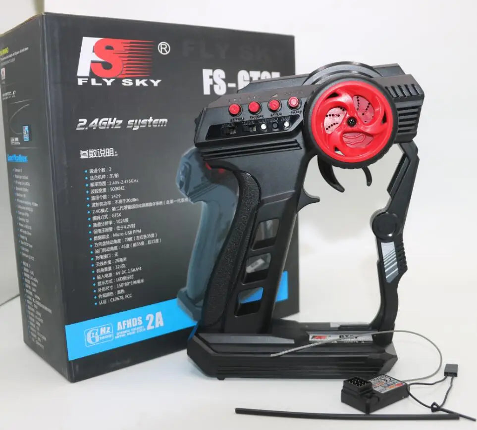 It’s FlySky GT2F 2 Channel 2.4GHz transmitter with receiver.Its strong signal-radiation and performance will help you handle your toys well.