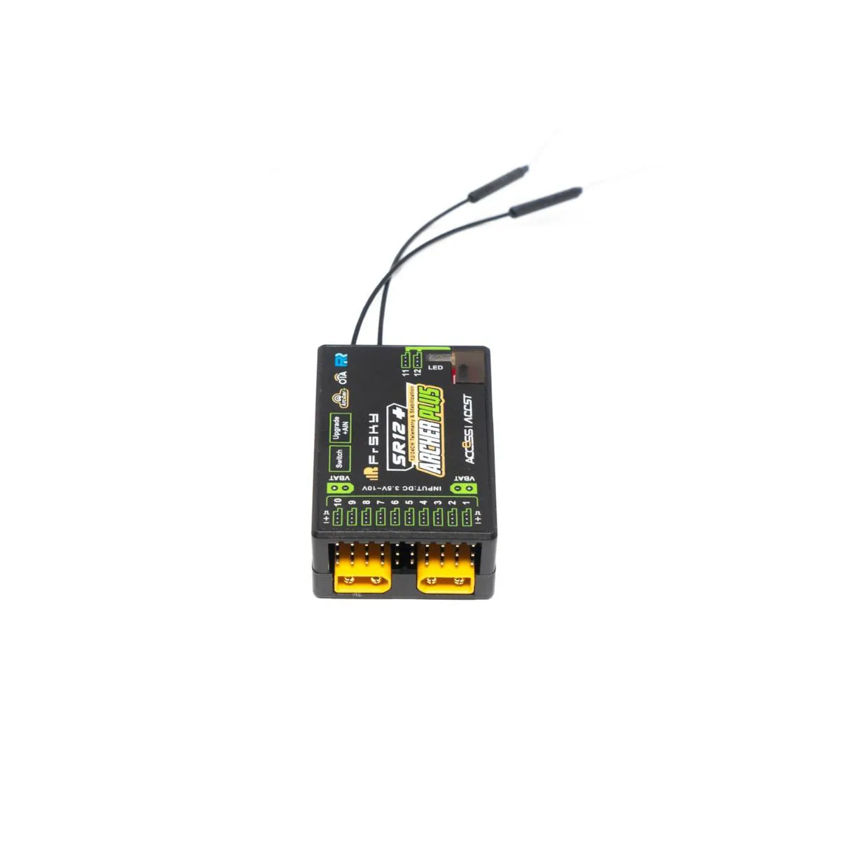 The SR12+ receivers have 12 configurable channel ports*, each channel port can be assigned as PWM, SBUS, FBUS, or S.Port. The SR12+ supports full-range signal strength with dual detachable antennas and guarantees optimal antenna reception and range. The SR12+ can be used as a Primary receiver in a redundant solution by setting a port (Channel Port 1) as SBUS In and connecting to any other FrSky receiver equipped with an SBUS Out port. With the FBUS protocol, the Archer Plus series receivers can open up the possibility of seamlessly pairing with multiple telemetry devices (XACT servos, ADV Sensors, etc.) as well as simplifying the builds setup.
