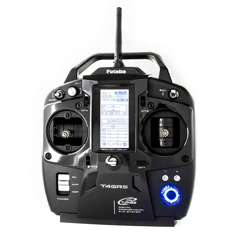The Futaba 4GRS is for use with surface models. Explore the many features of this radio below.