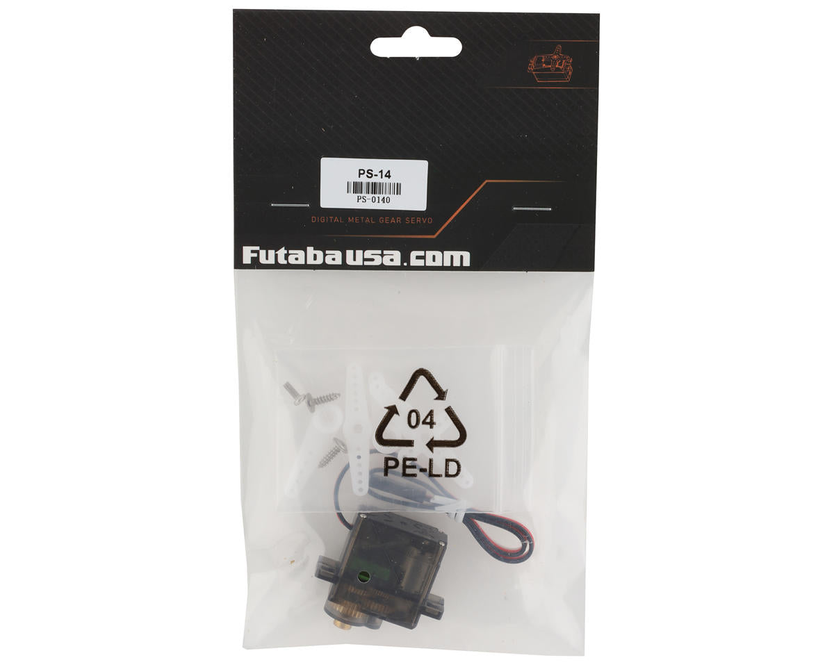 Futaba PS-14 Micro Digital Air Servo. Constructed using high quality components the PS-14 micro servo is ideal for aileron control on small electric powered aircraft. Weighing in at only 10g this is an excellent servo option for your next micro aircraft build.