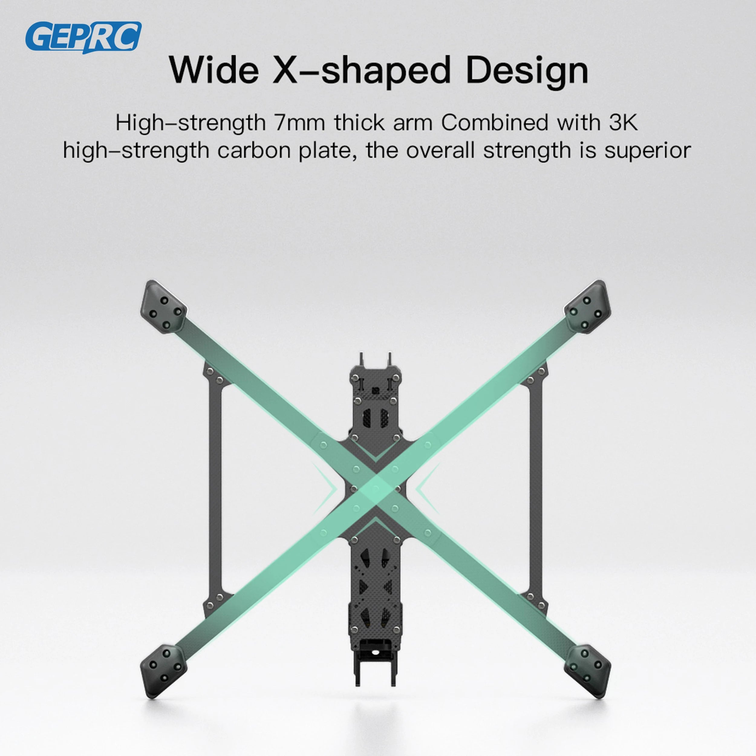 Upgraded high-strength 7mm thick arms and wide X-shape structure ensure overall flight stability