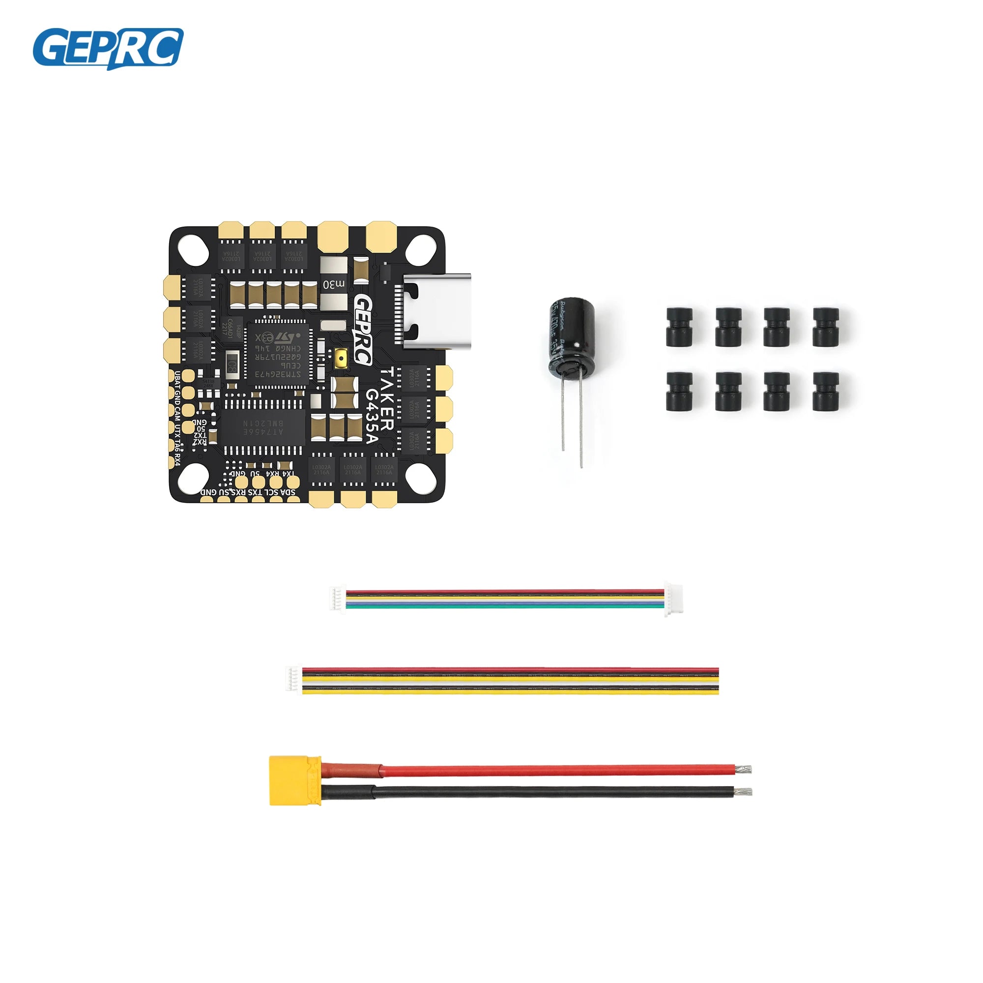 TAKER G4 35A is a newly developed AIO flight control by the GEPRC team. It adopts G473 main control and has more redundant computing power.