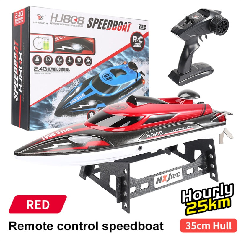 This RC boat features a high-speed, high-performance motor that provides powerful propulsion, reaching speeds of up to 25 kilometers per hour. It’s a HJ808 model toy designed for kids.