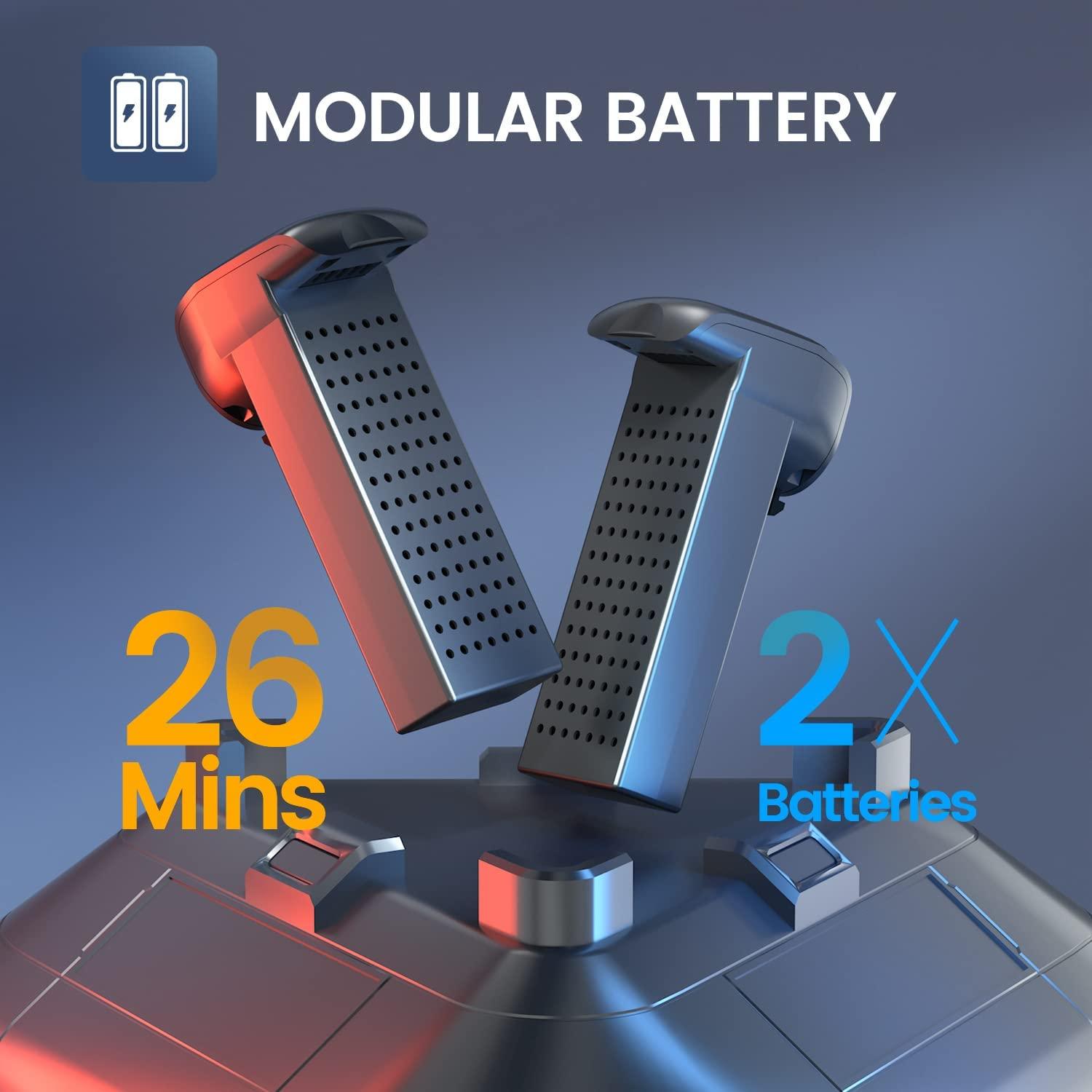 • Fly without Endurance Anxiety: the package is coming with 2 modular batteries; it only takes you 70 minutes to fully charge the battery.