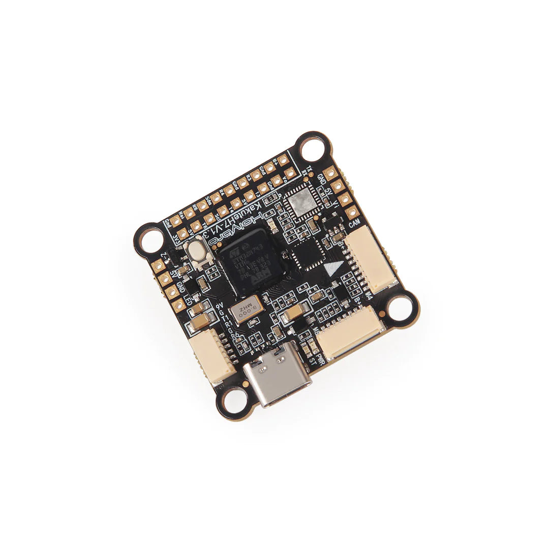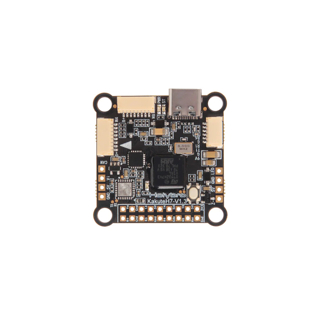 The Holybro Kakute H7 v1.3 Flight Controller is full of features including integrated Bluetooth, dual plug-and-play 4in1 ESC ports, HD camera plug, barometer, OSD, 6x UARTs, full Blackbox MicroSD card slot, 5V and 9V/3A BEC, easy soldering layout and much more.