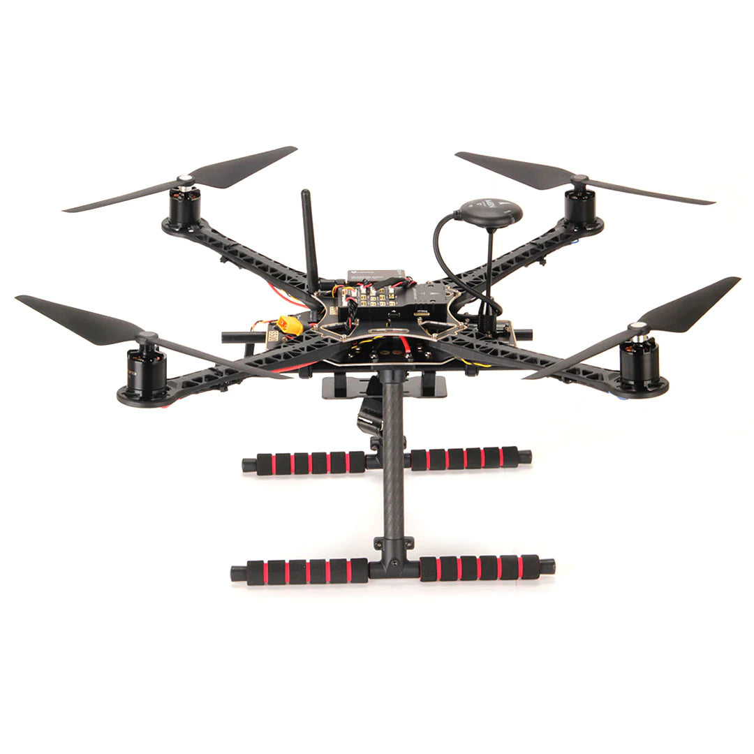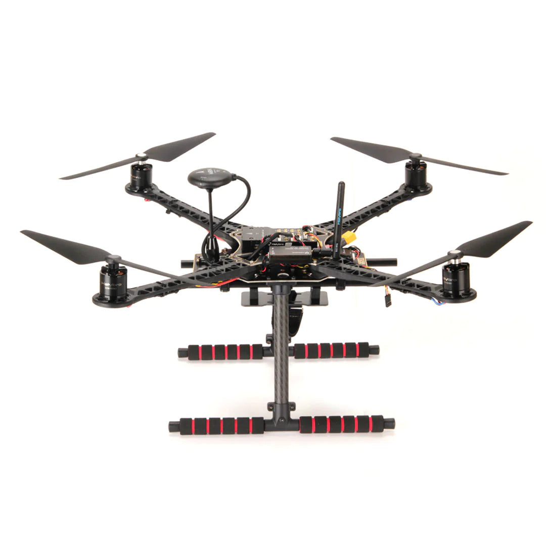 This S500 frame composed of mixture of materials. The arms are made of high strength, ultra-durable Polyamide-Nylon composite material reinforced with carbon fiber rod through the center. The landing gear consists of 16mm & 10mm diameter carbon fiber tubes connected via plastic tee connectors that has been thickened and strengthened compare to the previous version.