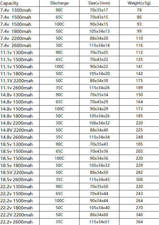 Type 4: 7.4V 11.1V 14.8V 18.5V 22.2V Lipo Battery