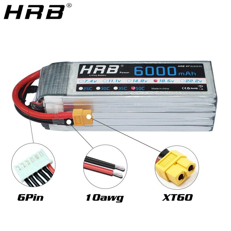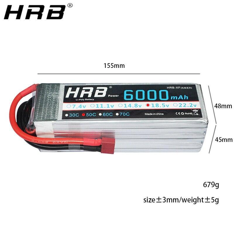HRB Lipo 5S Battery 18.5V 6000mah 50C XT60 Deans T XT90 EC5 XT90-S AS150 RC Helicopters Car Li-polymer FPV Airplanes AKKU Parts