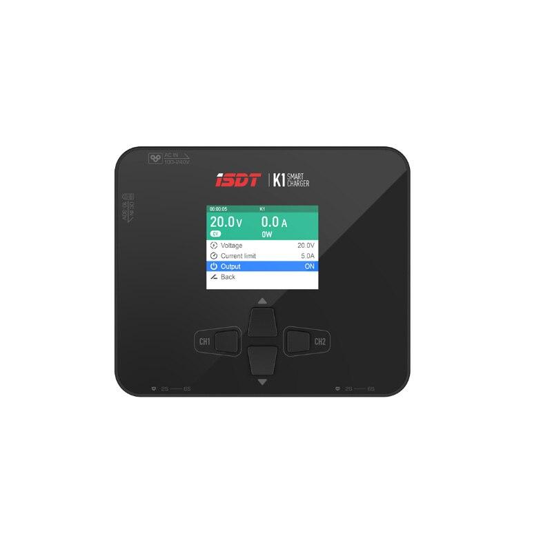 Introducing the ISDT K1 Charger, a dual-channel balance charger and discharger that supports AC 100W and DC 250W/10A. It features a 2.4-inch IPS LCD display and has synchronous parallel charging capabilities for fast and efficient charging of lithium-ion batteries (LiPo, LiFe, and LiHv) used in FPV drones and other applications.