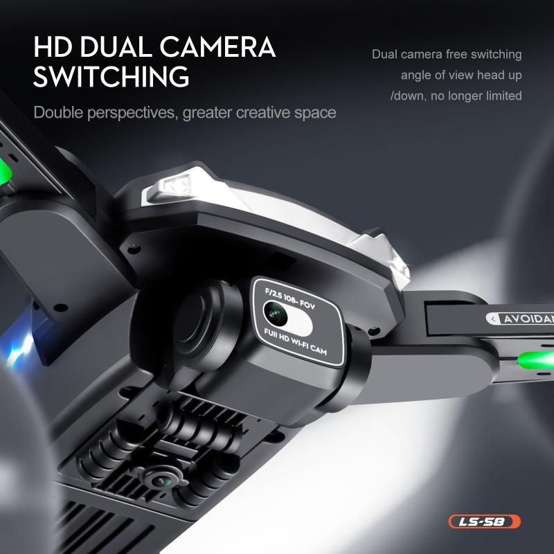 LS-58 Professional Drone with 4K HD Dual Camera, GPS, Obstacle Avoidance and Highlight LED Lights. Enjoy a thrilling flying experience with infrared obstacle avoidance and stunning 4K video quality. This drone also features a foldable design and WiFi FPV (First-Person View) transmission for an immersive experience.