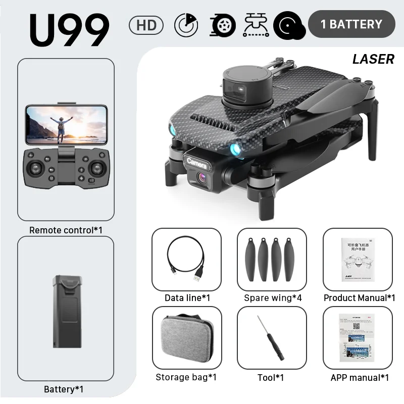 Laser Obstacle Avoidance: Drift-free flying distance up to 100M. Follows pre-planned routes and has 360-degree obstacle avoidance capabilities. Features low-power Brushless motor and 5G transmission for stable and reliable flight control.