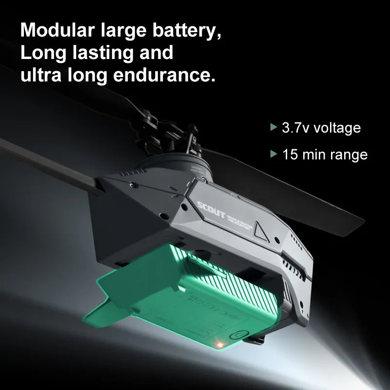 An intelligent low battery alarm system emits a prompt tone when the helicopter’s battery level falls to a critically low level, alerting you to potential issues.