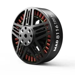 The MAD 8116 EEE is designed to carry payloads of 4000~5400g, with a 28-32 “carbon propeller, with max thrust is 11.5kg and motor weight of 460g. MAD 8116 IPE is a multi-rotor brushless motor for agricultural plant protection and professional aerial photography applications.With large load, high efficiency and excellent reliability.