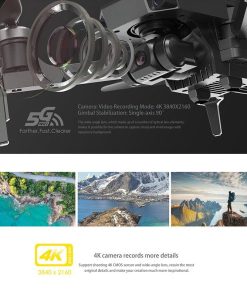 The camera features 4K resolution at 3840×2160 pixels, with single-axis gimbal stabilization allowing for smooth and stable footage. Additionally, the wide-angle lens enables capturing of sharp and vibrant images from farther distances.