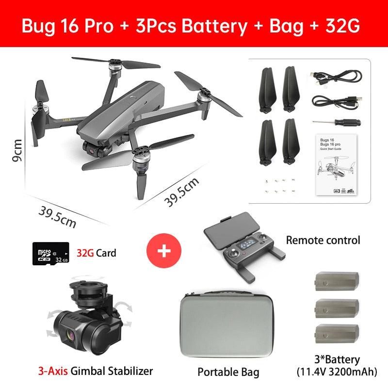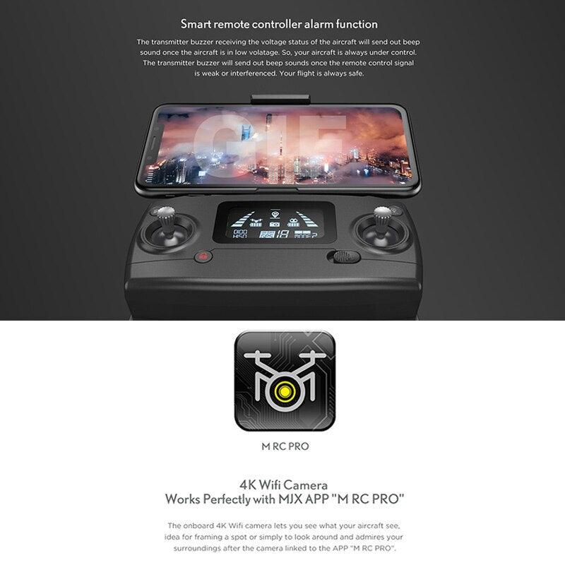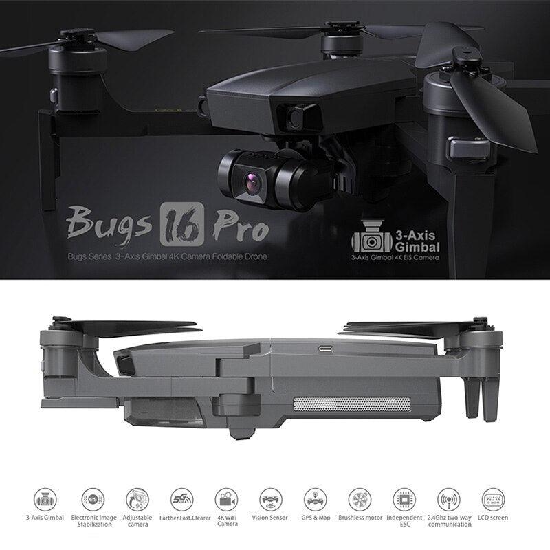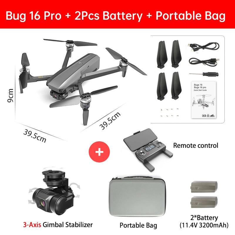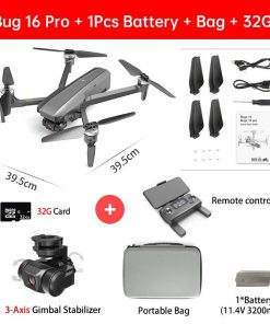 Introducing the MJX Bug 16 Pro Drone, featuring a 3-axis gimbal, 4K HD EIS camera, GPS, WiFi, FPV, RC quadcopter with brushless motors, foldable design, and professional-grade stabilization. Equipped with a 2.4GHz two-way LCD screen for real-time video transmission and ESC communication.