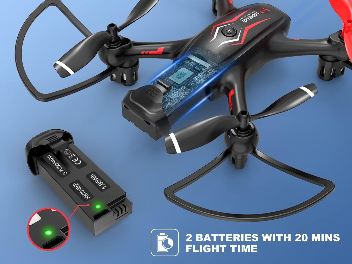 - Multifunction Mini Drone: The NH530 rc drone comes with voice control, 3-speed adjustment, circle fly, 3D Flips and high-speed rotating functions, fulfill your flying time with multiple joy! 2 modular batteries provide up to 18-20 mins long flight time, easy to replace and safe to charge. The size of NH530 mini drone is 6.9 x 6.9 x 1.6 inch (with guards), which makes it very easy to carry.