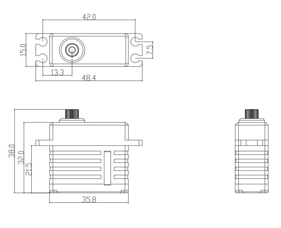 * Servo Motor: Brushless, with a high-torque steel gear and an all-CNC case (Mid-Size).