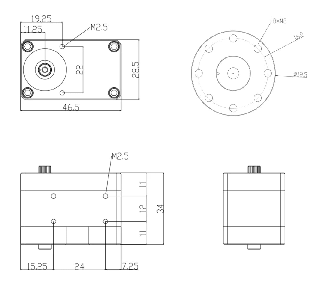 The OCServo ROBS-401 robot servo features RS485 communication protocol with a default baud rate of 1Mbps (38400bps to 1Mbps). It offers position control mode, which includes parameters such as running degree (0-360 degrees), velocity, current, and real-time tick feedback. Additionally, it provides trajectory data, including temperature, input voltage, and more.