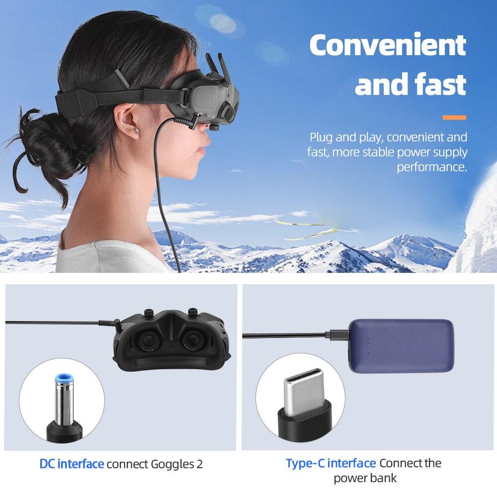 This Power Cable is designed specifically for DJI FPV Goggles 2, allowing for fast charging via Power Delivery (PD) or connecting to a mobile power bank with a Type-C interface. Please note that this cable is not compatible with standard power banks or original batteries.