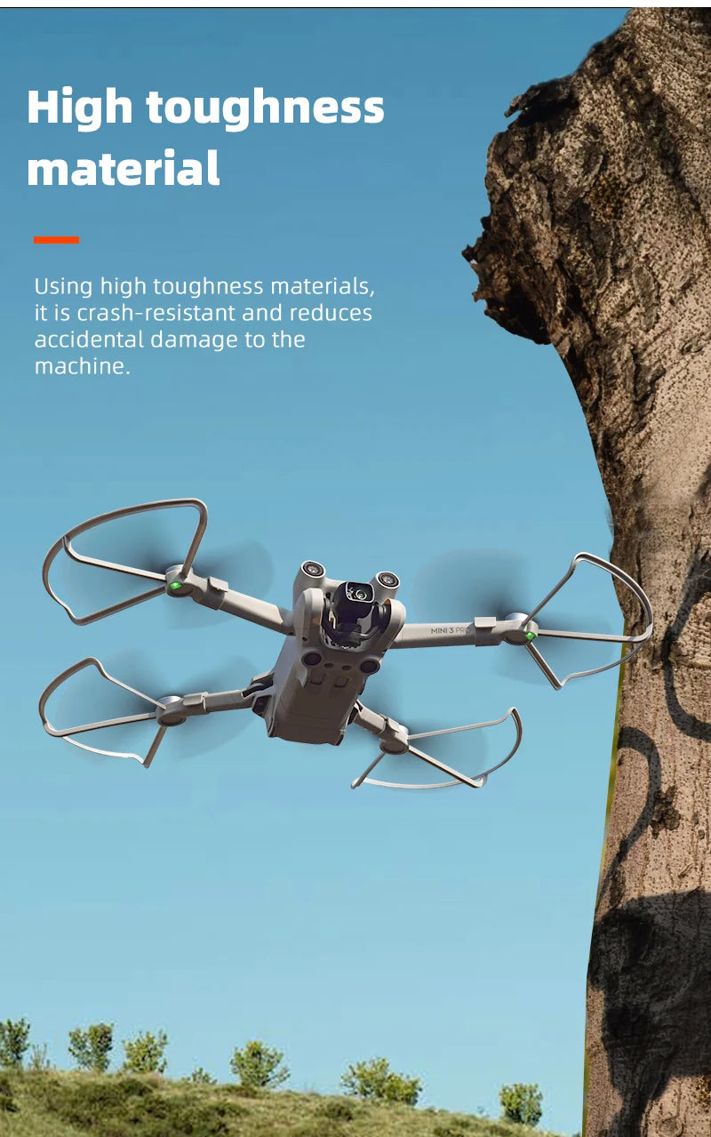 Protect your DJI Mini 3 Pro drone’s propellers with our Propeller Guard, designed to isolate and shield them from external hazards, ensuring improved flight safety and preventing damage or harm to people and surrounding objects.