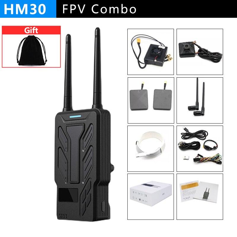 11. What are the dimensions and the weight of the HM30 unit and the FPV camera?