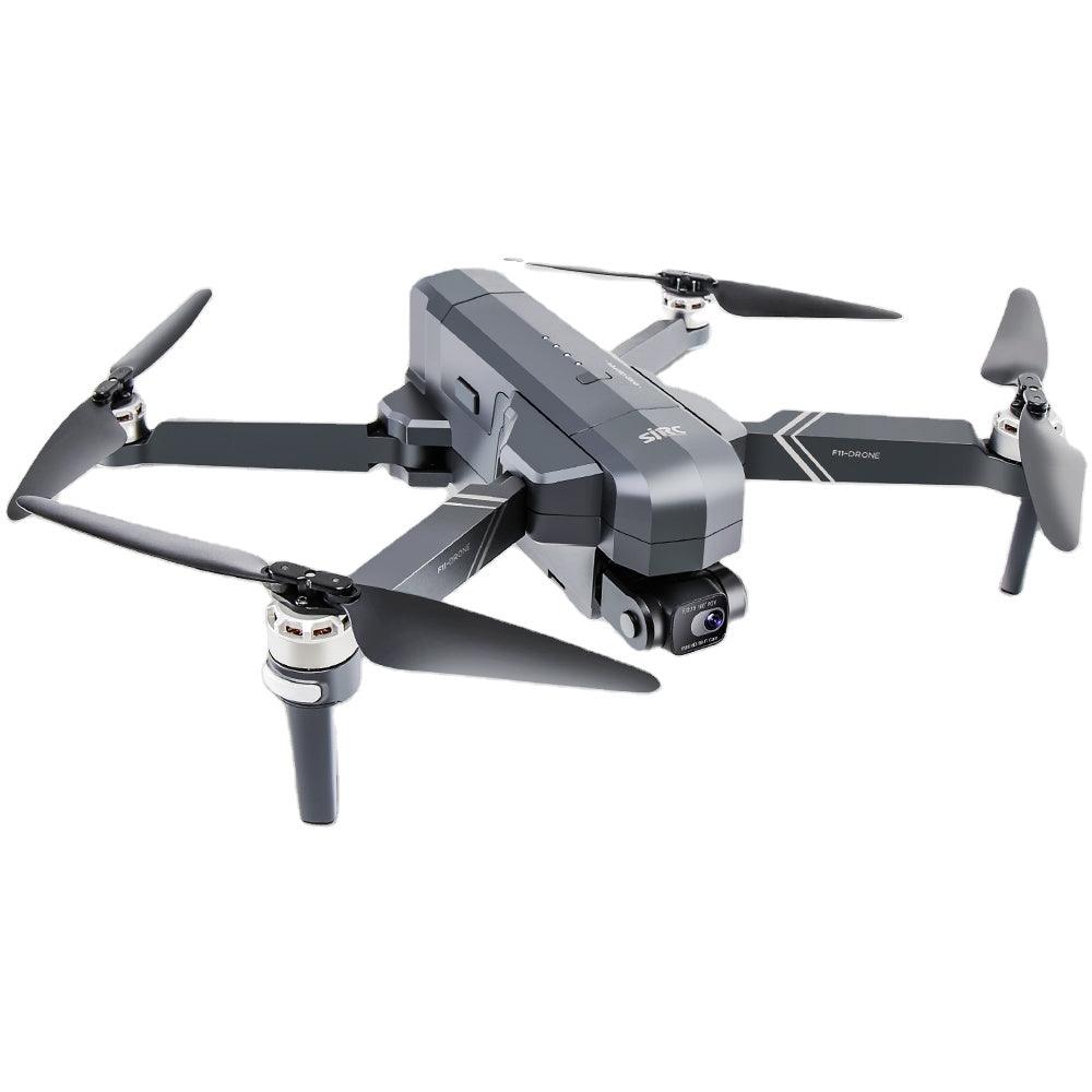 The SJRC F11S drone features a 4K HD Pro camera with a two-axis gimbal, a 3KM PTZ (pan-tilt-zoom) version, and True 4K HD video capabilities. It also includes GPS, 5G WiFi, and FPV (first-person view) brushless motors for professional-grade performance.